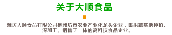 濰坊大順食品有限公司創(chuàng)建于2006年10月,位于中國出口蔬菜基地安丘市。地位置優(yōu)越,距離青島港100公里,是濰坊市農(nóng)業(yè)產(chǎn)業(yè)化龍頭企業(yè),2022年被授予國家級高新技術(shù)企業(yè),2024年被授予省“專精特新中小企業(yè)”。公司通過了歐盟BRC質(zhì)量體系認(rèn)證,ISO9000認(rèn)證,清真HALAL認(rèn)證。公司占地面積26680㎡,員工190人,主要制造、銷售VF果蔬脆片、FD凍干果蔬、香菇素牛肉、黑蒜等產(chǎn)品,年產(chǎn)能6000噸,創(chuàng)匯1000萬美元!